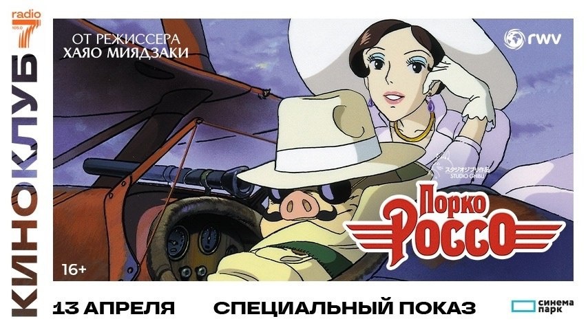«Радио 7 на семи холмах» представляет: специальный показ фильма «Порко Россо». И снова он, легендарный Хаяо Миядзаки! 13 апреля «Радио 7 на семи холмах» приглашает слушателей и партнёров в кинотеатр «Формула Кино» на специальный показ знаменитого фильма «Порко Россо», вышедшего в 1992-м и завоевавшего сердца зрителей по всеми миру. Розыгрыш билетов для слушателей проходит с 7 по 11 апреля в эфире «Радио 7» на 105.0 FM.