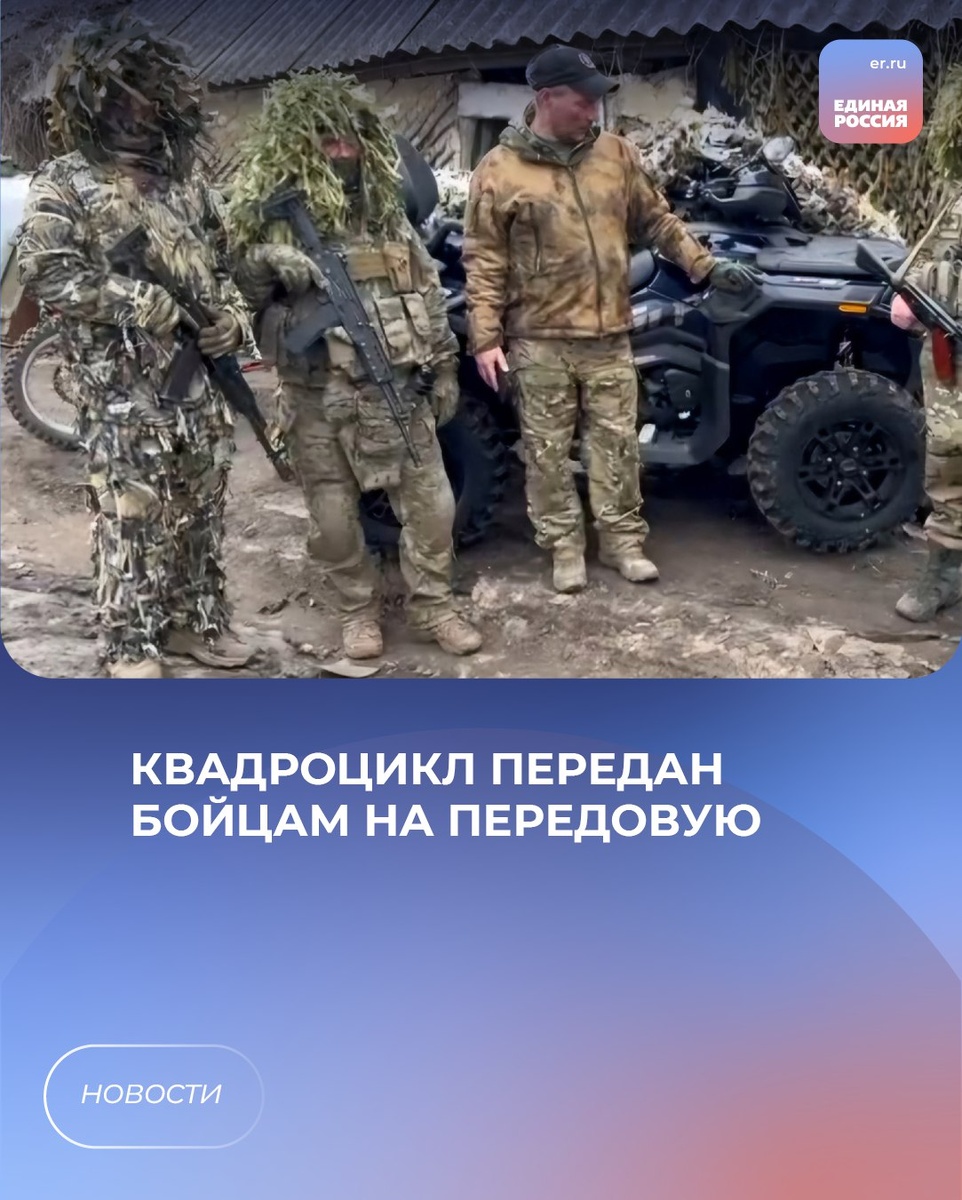 Очередная гуманитарная помощь передана защитникам на передовую. Запрос пришёл с Курского приграничья от бойцов 2-го парашютно-десантного батальона 51-го гвардейского полка. 🏍Квадроцикл, который использовался для подвоза боеприпасов и эвакуации раненых, был уничтожен противником. С просьбой помочь в приобретении новой техники к заместителю председателя регионального Законодательного Собрания Елене Лошаковой обратились сухиничские волонтёры. 👥К сбору подключились неравнодушные жители Калужской области и других регионов. Свой вклад внесла и фракция партии «Единая Россия» областного парламента. Квадроцикл был приобретен и доставлен бойцам: по словам военнослужащих, техника уже в работе. Спикер областного парламента Геннадий Новосельцев, поблагодарил всех, кто участвовал в сборе средств. #ЕР40 #ЕдинаяРоссия