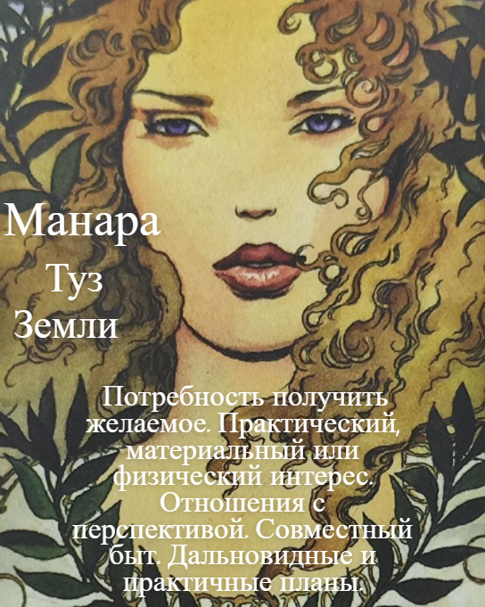 Эта карта олицетворяет принцип данности. Данность природой определенных качеств: красота, статность, хозяйственность, всех качеств, которые идут по масти Земли. Если женщине дана красота, то для достижения брака, у нее есть внутренние предпосылки, данность, чтобы реализовать себя с выгодной стороны. Таким женщинам легче найти себе пару, выйти замуж.