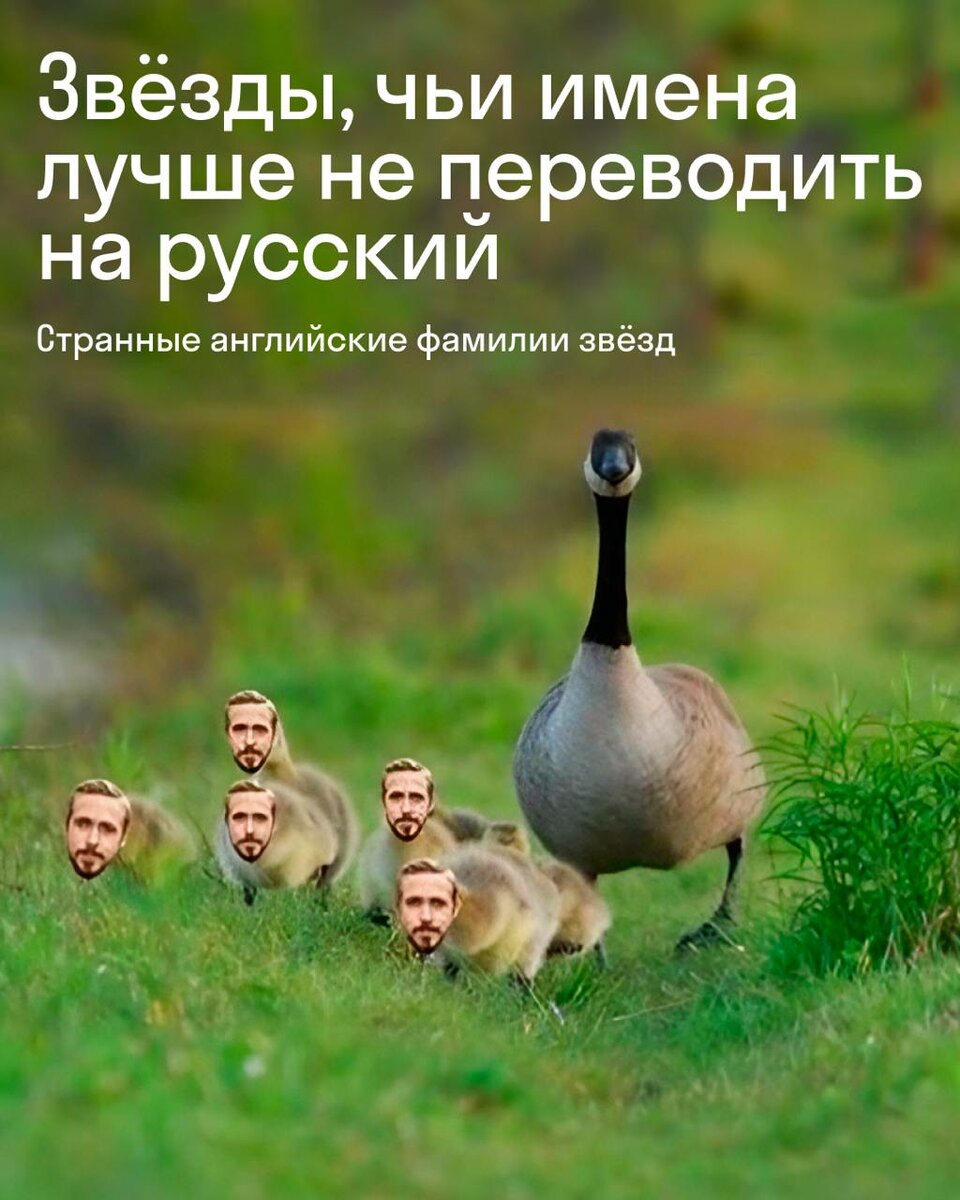 Что общего между Уиллом Смитом и кузнечным делом? И откуда появились мемы с Гослингом и гусями? 🪿 Всё потому, что у многих англоязычных звёзд довольно необычные фамилии. И если не знать их перевода, то звучат они довольно неплохо. Но мы решили перевести имена селебрити на русский лад и посмотреть, что из этого выйдет 👇