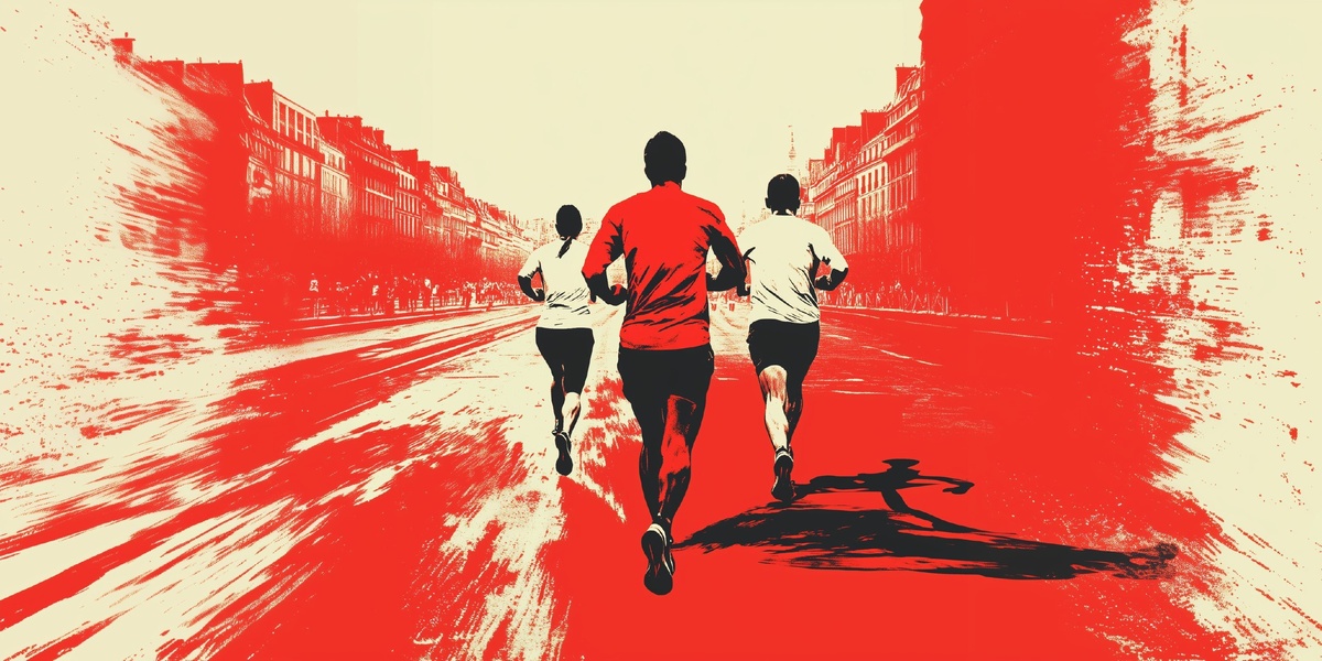 Создано на основе запроса: Create me a visual in bright red and beige tones for the Nantes marathon where the objective is to represent a