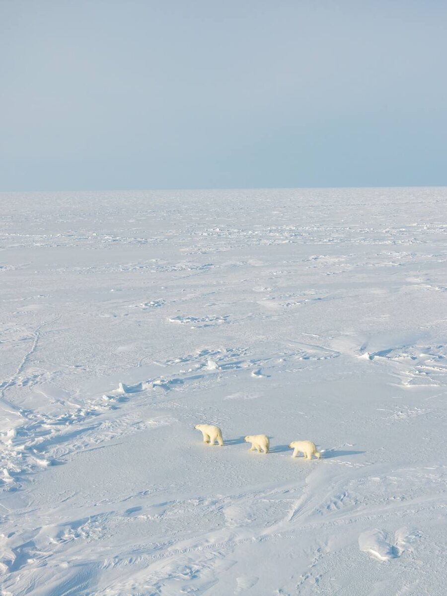 Первая встреча с хозяином Арктики ☑️ По пути на Продовольственное Дэпо барона Толля в проливе Григорьева нам посчастливилось встретить настоящих хозяев Арктики — белых медведей. Традиционно в каждую большую экспедицию в Арктику мы встречаем былых, медведей. В этот раз на нас вышло сразу три медведя: медведица и два уже крупных медвежонка. Это настоящая медвежья семья, и наблюдать за ними поистине захватывающе. Мы провели примерно пару часов, наблюдая за их поведением, изучая, как они взаимодействуют друг с другом и исследуют свои окрестности. Белые медведи — это не только символ Арктики, но и важная часть её экосистемы. Эти величественные создания адаптировались к суровым климатическим условиям, и наблюдения за ними всегда наполняет сердце восхищением и уважением к природе. После встречи с хозяином севера мы продолжили наш путь к важным историческим местам Арктики. Это путешествие нашей команды не только о природе, но и о культуре, истории и наследии этого удивительного сурового