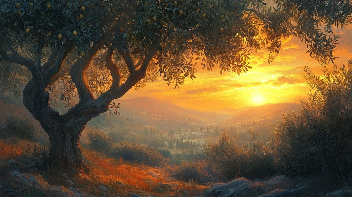 Создано на основе запроса: olives on an olive tree branches in the morning