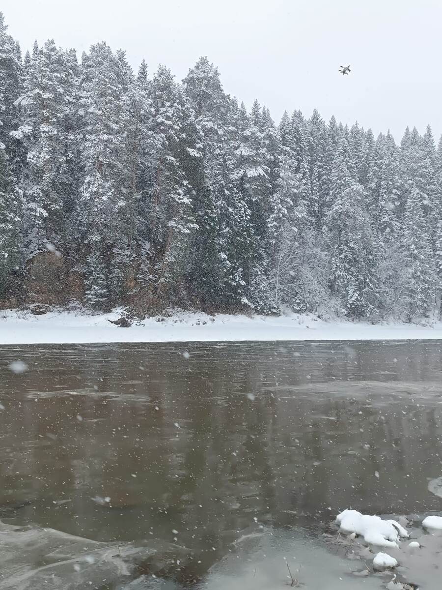 🏞 Чусовая, с её живописными берегами и суровым уральским характером, вновь оказалась в плену зимы. Затяжная весна - явление для Урала не редкое - снег может выпасть и в апреле, и даже в начале мая, особенно в горных районах. Особенности рельефа оказывают непосредственное влияние на микроклимат Чусовой. Глубокие долины, высокие скалы по берегам, густые леса создают условия для удержания холода и формирования локальных климатических аномалий. Снег, выпавший в этих местах, тает медленнее, а ночные заморозки, даже в конце весны, могут привести к его повторному образованию, сопротивляясь теплу и солнцу.