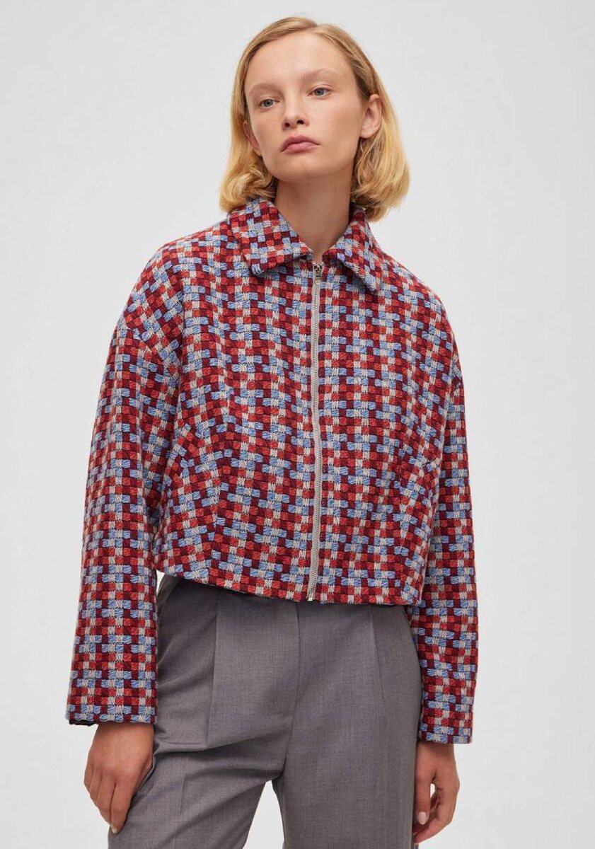 Укороченный жакет Aim Clo — это спокойный шик и ретро в единой истории. Графичная клетка в приглушенных красных и голубых оттенках отлично ладит с расслабленным кроем и свободной посадкой на плечах, добавляя образу лёгкости. Этот жакет легко вписывается и в строгий офисный образ, и в непринуждённый стрит-стайл.