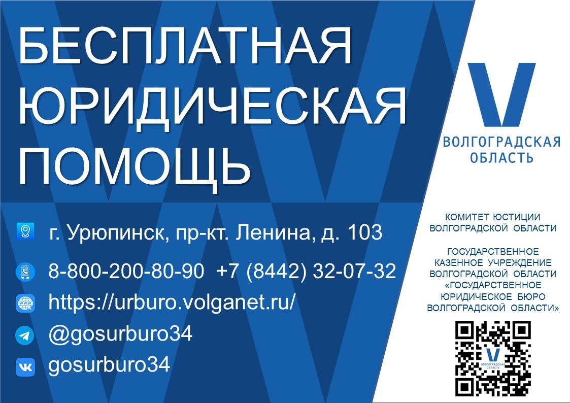 📌Государственное юридическое бюро Волгоградской области информирует о праве на получение гражданами бесплатной юридической помощи и местах оказания такой помощи в г. Урюпинске. 🗂Подробности смотрите в афишах 👉 #ГосБюро #администрацияУрюпинска #консультация