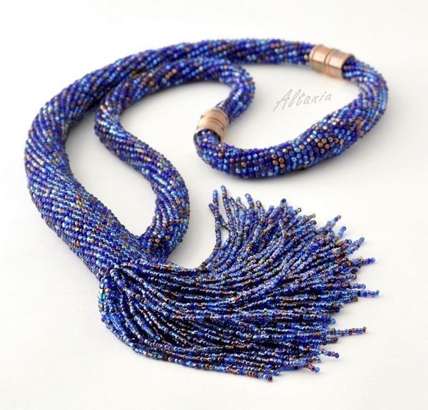Как же мне нравится идея этих колье: когда вязанный жгут "перетекают" в нити