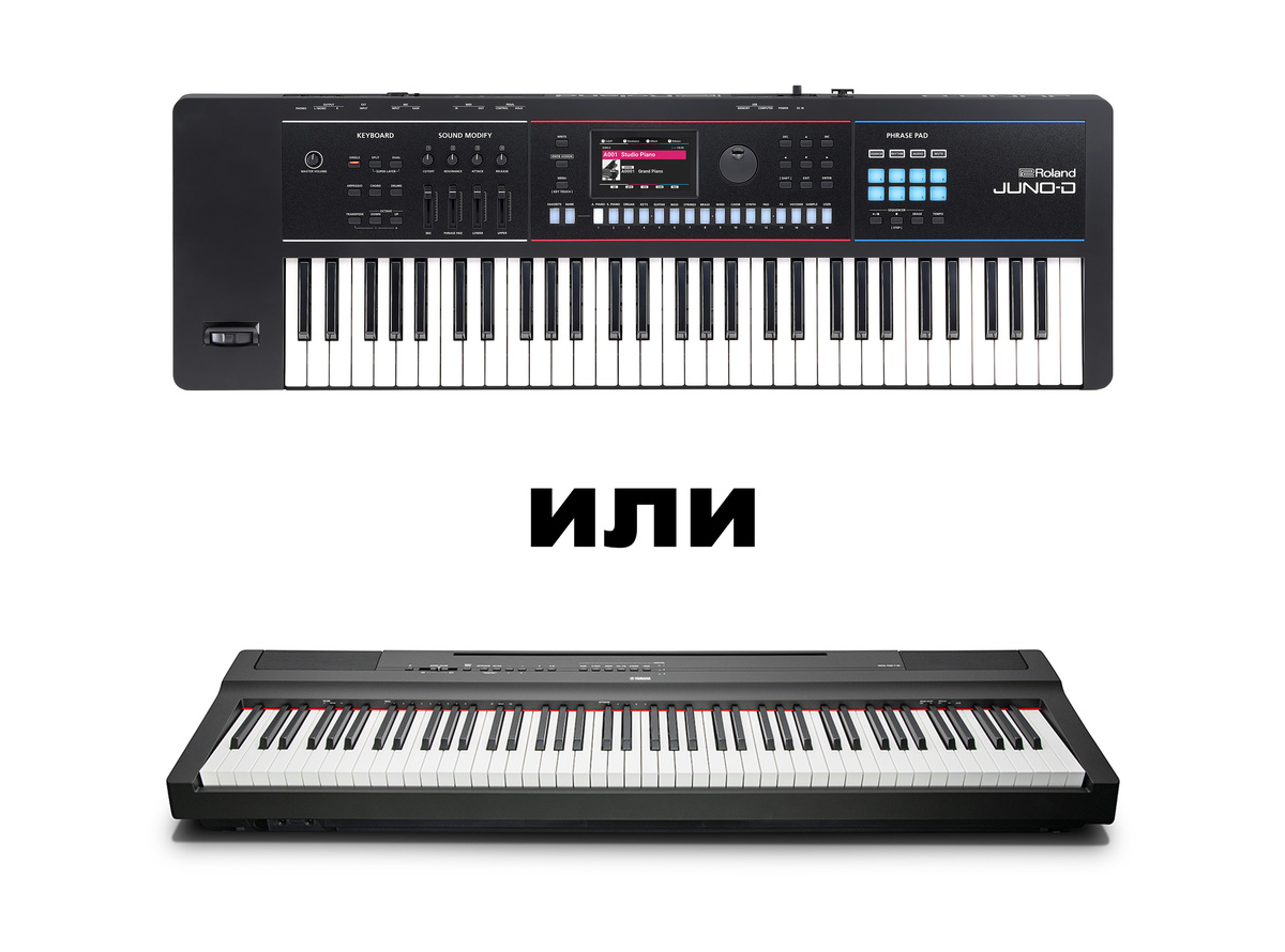 Синтезатор или цифровое пианино. Что выбрать? Этот вопрос возникает в головах многих, хочет купить клавишный музыкальный инструмент себе или сделать подарок. Давайте вместе разберёмся, чем они отличаются, чем похожи, и когда целесообразнее использовать то или иное. Начнём с цифрового пианино. Цифровое пианино – это инструмент, который имеет клавиатуру с молоточковой механикой, имитирующей молоточковую механику акустического пианино/рояля. Они бывают корпусные и портативные. Корпусные имеют деревянный корпус, что делает их похожими на акустическое пианино. Портативные имеют, в основном, пластиковый корпус и внешне больше похожи на синтезаторы, поэтому их иногда путают. Цифровое пианино звучит как акустическое пианино, но помимо этого имеет несколько других вариантов звучания (тембров): орган, электропиано, струнные и другие. Также в цифровых пианино есть встроенные партии ударных инструментов, что делает их похожими на синтезаторы. Некоторые цифровые пианино наделены практически полным