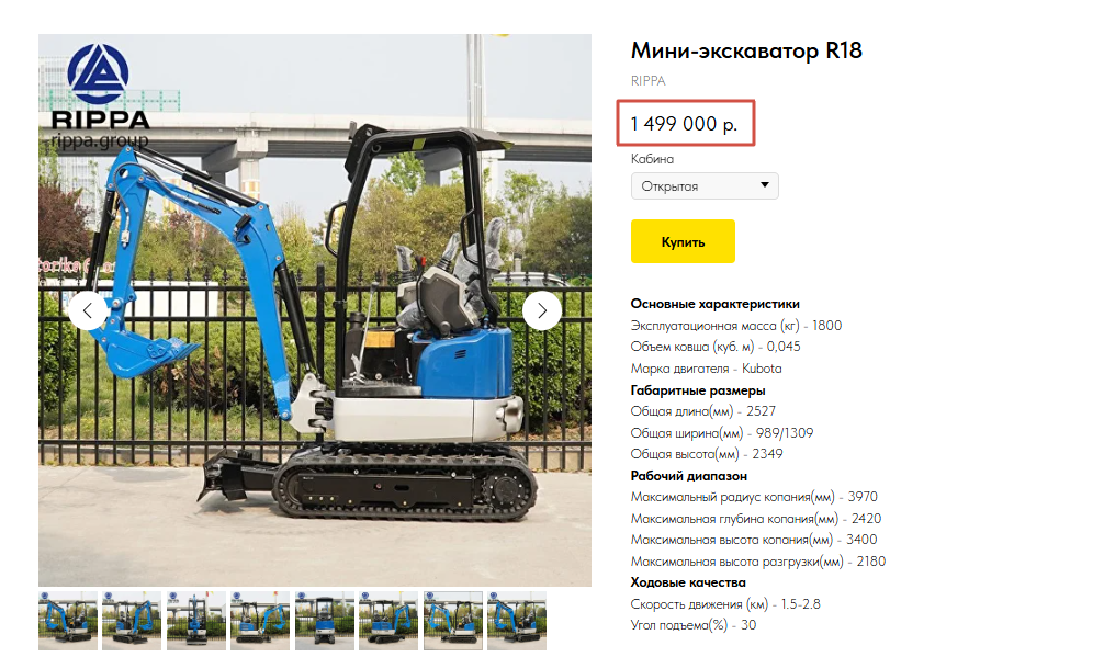 Приобретение мини-экскаватора — серьезная инвестиция для любого бизнеса в строительной или коммунальной сфере. Однако грамотный подход к выбору техники позволяет значительно сократить расходы без потери качества. На примере модельного ряда Rippa рассмотрим, как сделать выгодную покупку. Линейка Rippa предлагает 7 моделей мини-экскаваторов с разными характеристиками. Ключ к экономии — точное соответствие техники вашим потребностям: Производитель предлагает различные варианты оснащения: Спрос на спецтехнику носит сезонный характер. Зимой дилеры предлагают скидки до 10-15%. Например: Некоторые производители предлагают несколько вариантов оплаты: Например у Rippa есть лизинг: ежемесячный платеж, например, от 35 000 руб. для модели R10, позволяет начать работу без крупных вложений. Поэтапное погашение стоимости техники. Вы выплачиваете стоимость техники в течение нескольких лет, что позволяет снизить финансовую нагрузку. Мини-экскаваторы Rippa отличаются низкой стоимостью владения: Некоторы