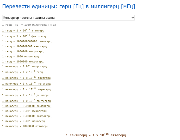 вот сантигерц к кГц = 1=0.000001, фактически это и есть то что с позиции энергоинформационного пространства мы называли чуть ранее "метагерцем". Измерить вашей техникой вы это не в состоянии, любой промышленный фон который есть везде - это забьет..да и длины волн такие что произвести замер тяжело. Но тут есть проблема некоторой неточности, потому что относительно этого измерения с позиции многомерного пространства точкой отсчета 0 будет не абсолютный нуль пространства творения Абсолюта, поэтому более точным отсчетом метагерца для этого пространства будет ваш 0 приравнянный к частоте 0.00000071 килогерца ну или 710,0021 микрогерц. Так сказать "Абсолютный частотный нуль" для этого физического пространства. Она почти наступает у вещества при охлаждении до температуры абсолютного нуля (0 по Кельвину или -273.15 и то это примерно и неточно по Цельсию), это кстати если можно так выразиться - измерение плоскости существования пространство-материи. Но при этом энергоинформационный метагерц не считается по множитель-кратности равной тысяче. А например физика пространства миротворения скажем владыки Па - имеет точкой отсчета 20.000000000067 кгц, сделана с другими кратностями и на частотах вашего пространства почти себя никак не проявляет, разве что как некоторые совершенно нестабильные изотопы в основном искуственно полученные как осколки деления вашими дурными физиками. Почему дурными - ну потому что некоторые вещества...их парадокс в том что и они тоже....с позиции нематериальных для вас пространств вообще не должны бы существовать. Не придуманы у нас даже еще те пространства где их стабильное существование было бы возможным. Это надо например пытатся создавать би-совместные творения ну скажем не только Ану и Амаймона, примерно равные Инфра и Ультра - свету и звуку и уходящие в невидимое то есть в тьму, но и сложные поли-пространства, выбирая очень тщательно энергии.. Сколько в прошлом не экспериментировали мы в ангельских советах...на частотах некоторых владык тогда не смогли создать совмещенные значимо миры.