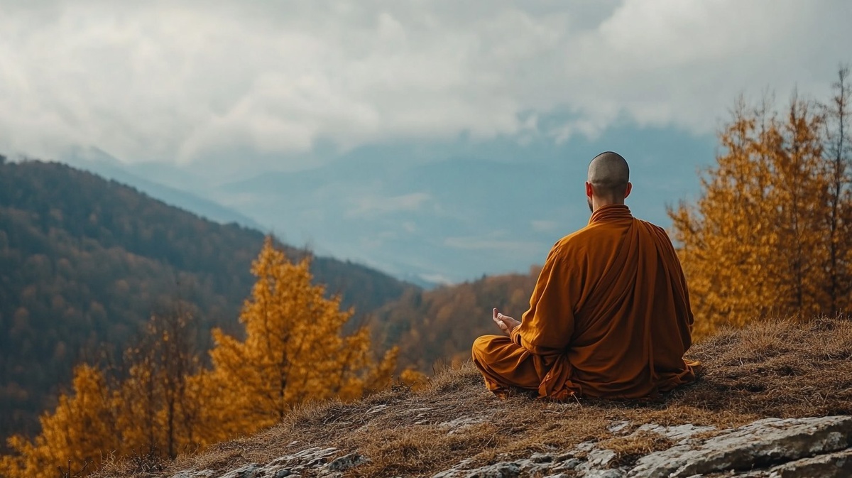 Создано на основе запроса: The monk meditating on a hill as seasons change rapidly around him