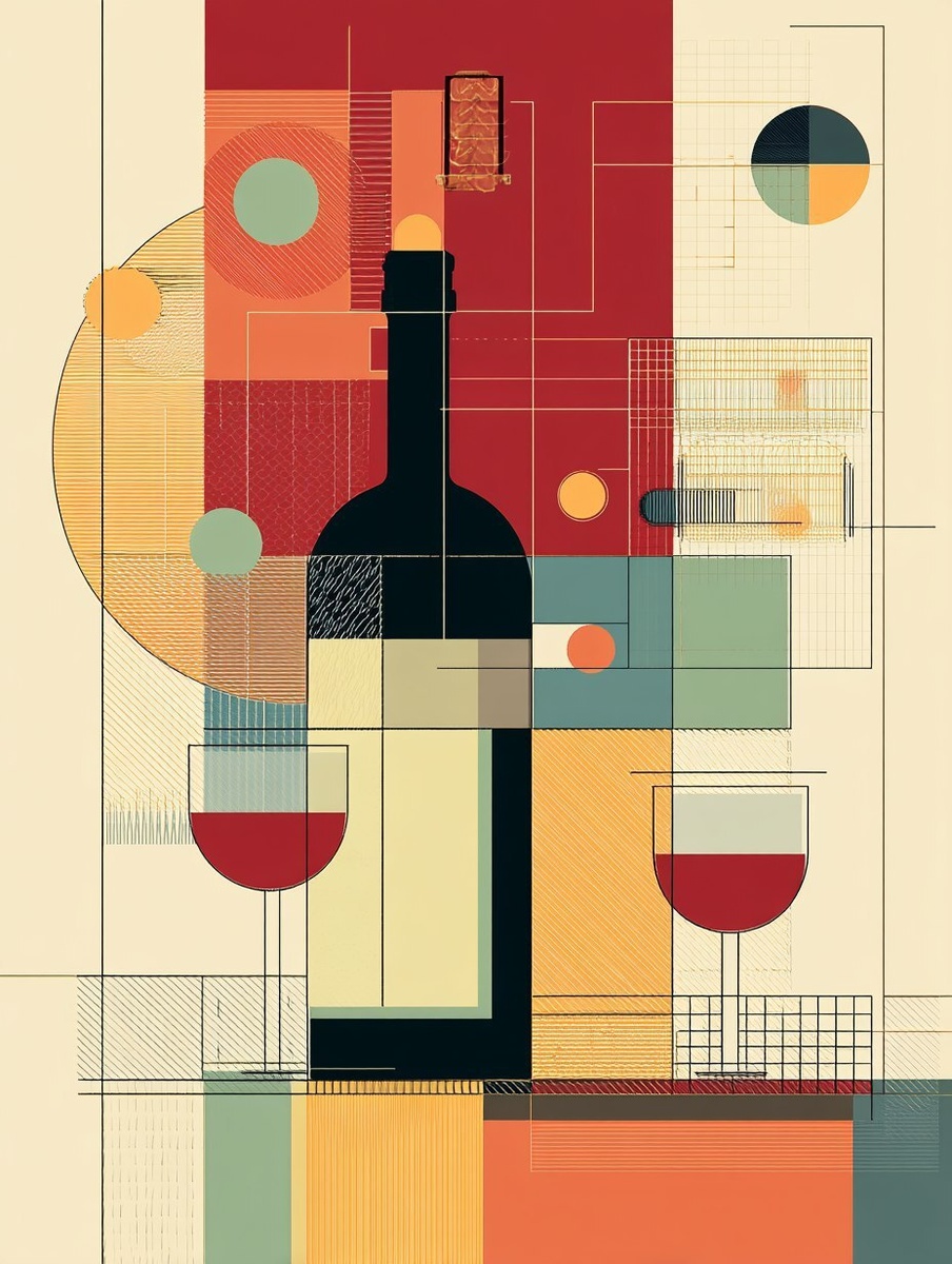 Создано на основе запроса: vector illustration of bauhaus schematic of a bottle of wine and wine glasses --- Автоперевод: Векторная иллюстрация схемы Баухауса из бутылки вина и бокалов вина Как тебе вариант? 🤔 https://dzen.ru/id/65c0c65c86e4f837c27b24d7 #ИИ #AI #нейросеть #midjourney #art