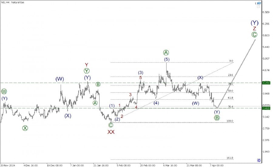 По Газу на четырехчасовом таймфрейме представлена разметка крупной действующей волны (Y), которая имеет сложную внутреннюю форму и