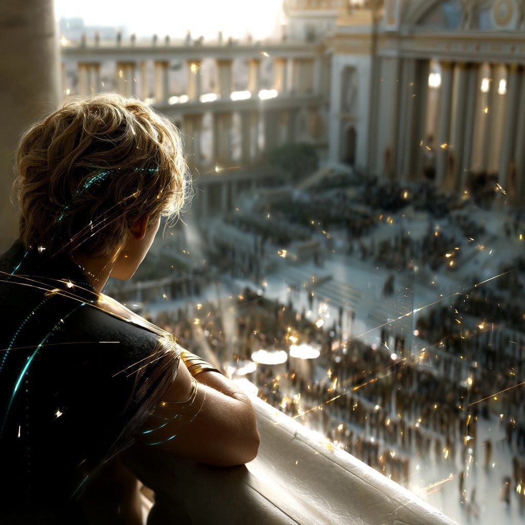 Создано на основе запроса: a royal hot aesthetic teenage male prince, with a jersey mop hairstyle and cut with a high fade, dark blond highlight streaks, hazel and turquoise eyes, biceps popping, and smirking while gazing over a grand royal terrace, an epic crowd cheering from below, 12:12, cinematic, 2nd person view, detailed --- Автоперевод: Королевский горячий эстетический подростковый мужской принц с майкой из майки и бирюзовой прически, бицепсами и ухмыляющими Красиво получилось? 🤔 https://dzen.ru/id/65c0c65c86e4f837c27b24d7 #ИИ #AI #нейросеть #midjourney #art