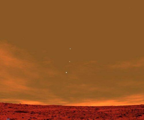 Земля, Юпитер и Венера на небе Марса
