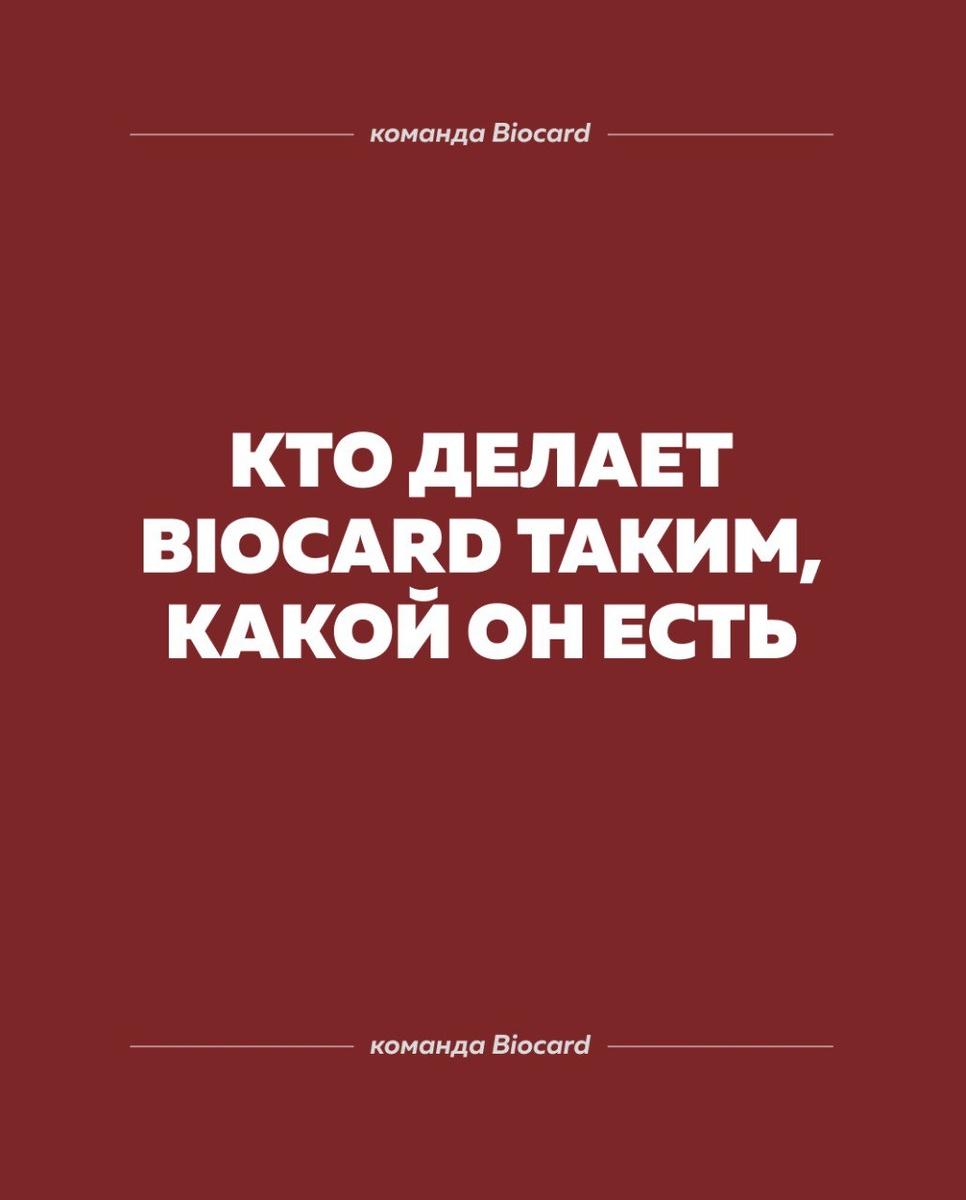 Кто делает Biocard таким, какой он есть Biocard — это команда, которой можно доверить самое ценное. С нами работают не потому что “удобно”, а потому что надёжно.