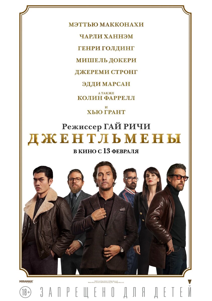Фильм «Джентльмены» (2019) — это криминальная комедия от мастера жанра Гая Ричи. Режиссёр возвращается к своему любимому стилю после работы над фильмами «Агенты А.Н.К.Л.» и «Меч короля Артура». В центре сюжета — история Микки Пирсона, который придумал новый способ выращивания марихуаны и решает продать свой бизнес. Частный сыщик Флетчер предлагает свои услуги, чтобы помочь Микки с продажей. Фильм отличается от предыдущих работ Ричи тем, что действие происходит в более солидном и размеренном мире криминала. Большая часть фильма представляет собой один большой флэшбек, рассказанный от лица ненадёжного рассказчика. В фильме присутствуют остроумные диалоги и красивые съёмки. Главные герои фильма яркие и харизматичные, среди них можно выделить Макконахи в идеальном костюме и Колина Фаррелла в спортивном костюме. Режиссёр не стесняется показывать любимых звёзд в нелепых ситуациях, что добавляет фильму юмора и самоиронии. «Джентльмены» — зрелый ироничный фильм с солидным актёрским составом, о