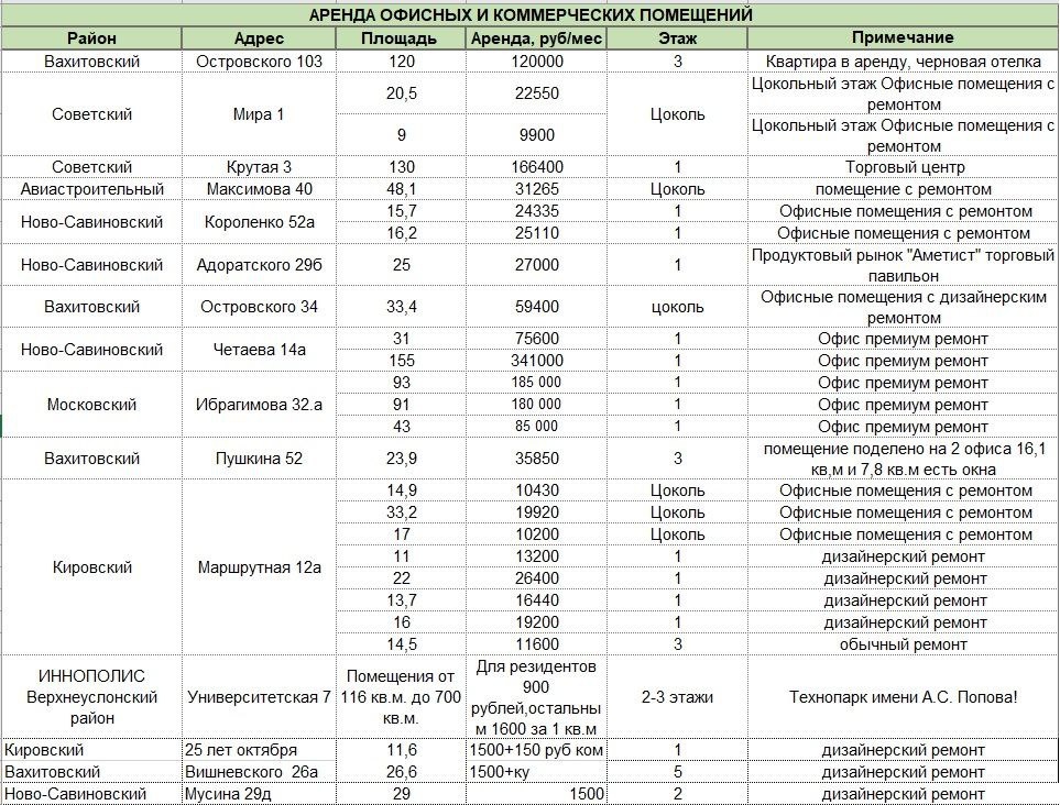 Добрый вечер, дорогие друзья и уважаемые коллеги! 🌟 Я подготовил для вас список помещений свободного назначения для аренды в различных районах Казани. Если вам нужна более подробная информация, не стесняйтесь обращаться в личные сообщения — я с радостью расскажу и покажу все детали! 💼