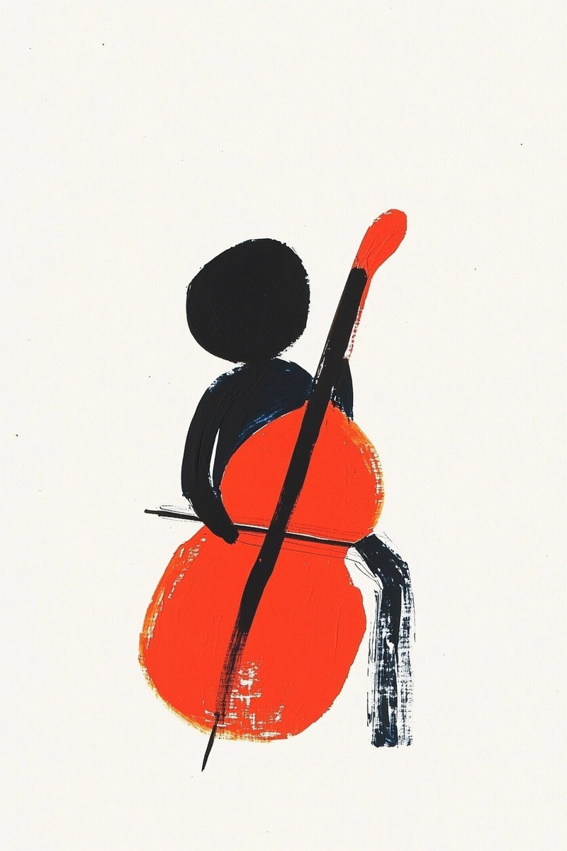 Создано на основе запроса: afro modern flat art, black man playing cello, black man, shades of royal blue, red and gold and black