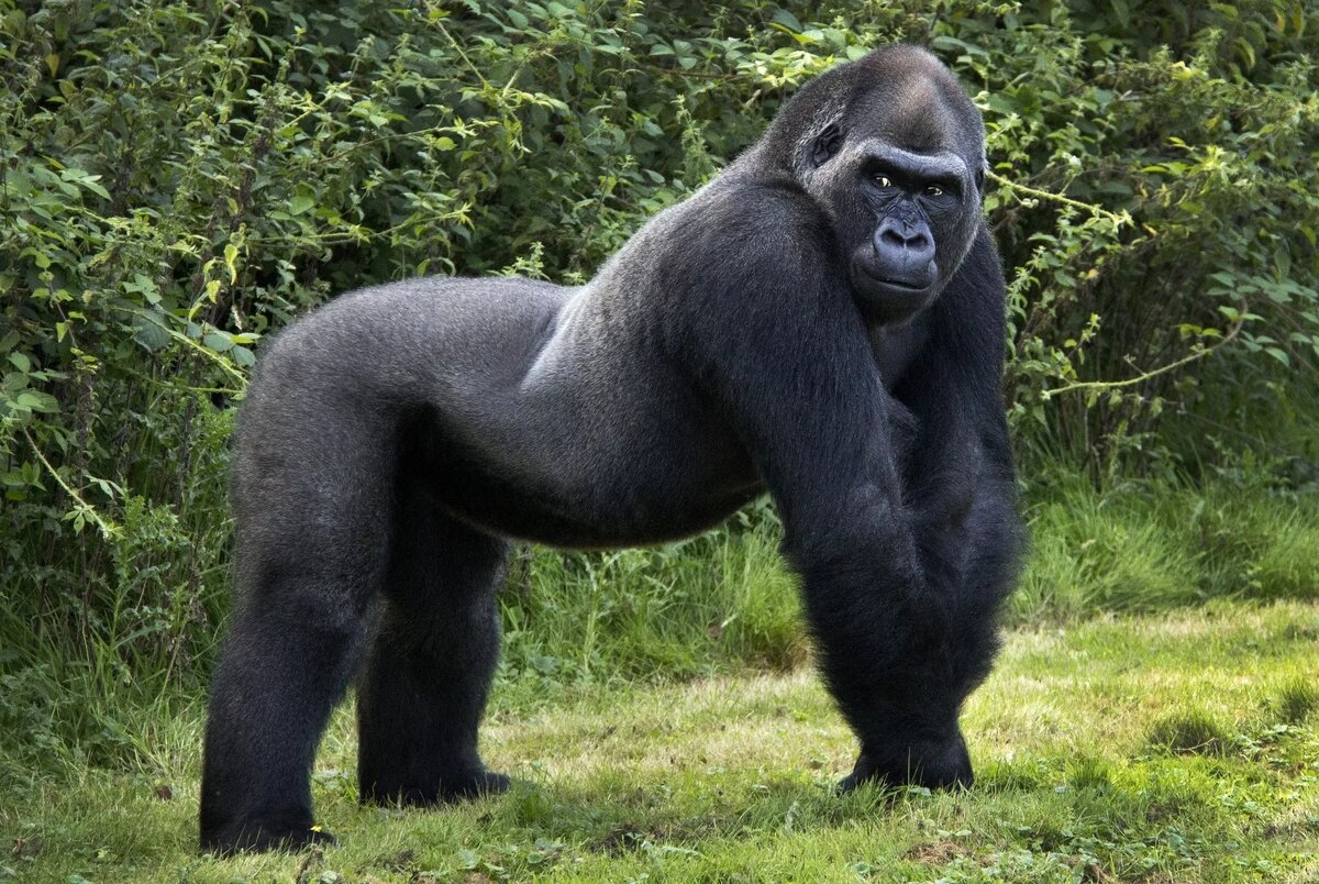 Гориллы являются одними из самых могущественных человекообразных обезьян. Удивительно, но рацион этих массивных и сильных животных в основном состоит из растительной пищи, то есть они являются травоядными. Чтобы удовлетворить свои пищевые потребности, в ход идут стебли различных растений, листья и корешки. Горные гориллы, обитающие в национальном парке Конго, едят в основном волокнистую пищу, такую как чертополох, крапива и побеги бамбука. Гориллы, которые обитают на равнинах, в лесах, питаются более разнообразно. В их рацион, кроме различных растений, также входит много фруктов и ягод. Таким образом, гориллы едят много разнообразной растительной пищи, что дает им энергию для повседневной жизни. Правда, было также замечено, что в тех случаях, когда растительной пищи становится мало, гориллы могут поохотиться на мелких животных или полакомиться насекомыми. Но это редкие случаи. В тропических джунглях, в которых обитают равнинные гориллы, полным-полно растительной пищи, поэтому гориллы о