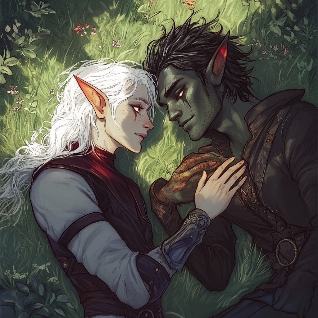 Создано на основе запроса: illustration fantasy style of a elf male with medium curry white hair, red eyes layed on a grass field looking at a male tiefling with medium dark straight hair, pale skin, white eyes. They are looking at each other holding their hands --- Автоперевод: Иллюстрационный фэнтезийный стиль эльфа мужского пола со средним белыми волосами в карри, рыжие глаза лежали на травяном поле, глядя на мужского тифлинга со средними темными прямыми волосами, бледной кожей, белыми глазами. Как тебе эта картинка? 🤔 https://dzen.ru/id/65c0c65c86e4f837c27b24d7 #ИИ #AI #нейросеть #midjourney #art