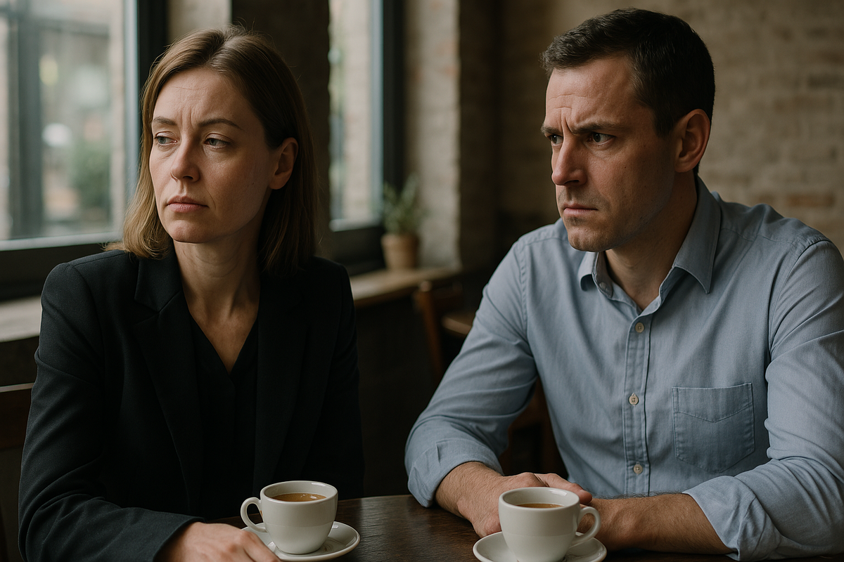 Официантка принесла кофе. Саша потянулся за сахарницей, но рука у него дрожала. Ему явно было некомфортно. Он сделал глоток, обжёгся, чертыхнулся. Лена еле заметно усмехнулась, но быстро спрятала полуулыбку.