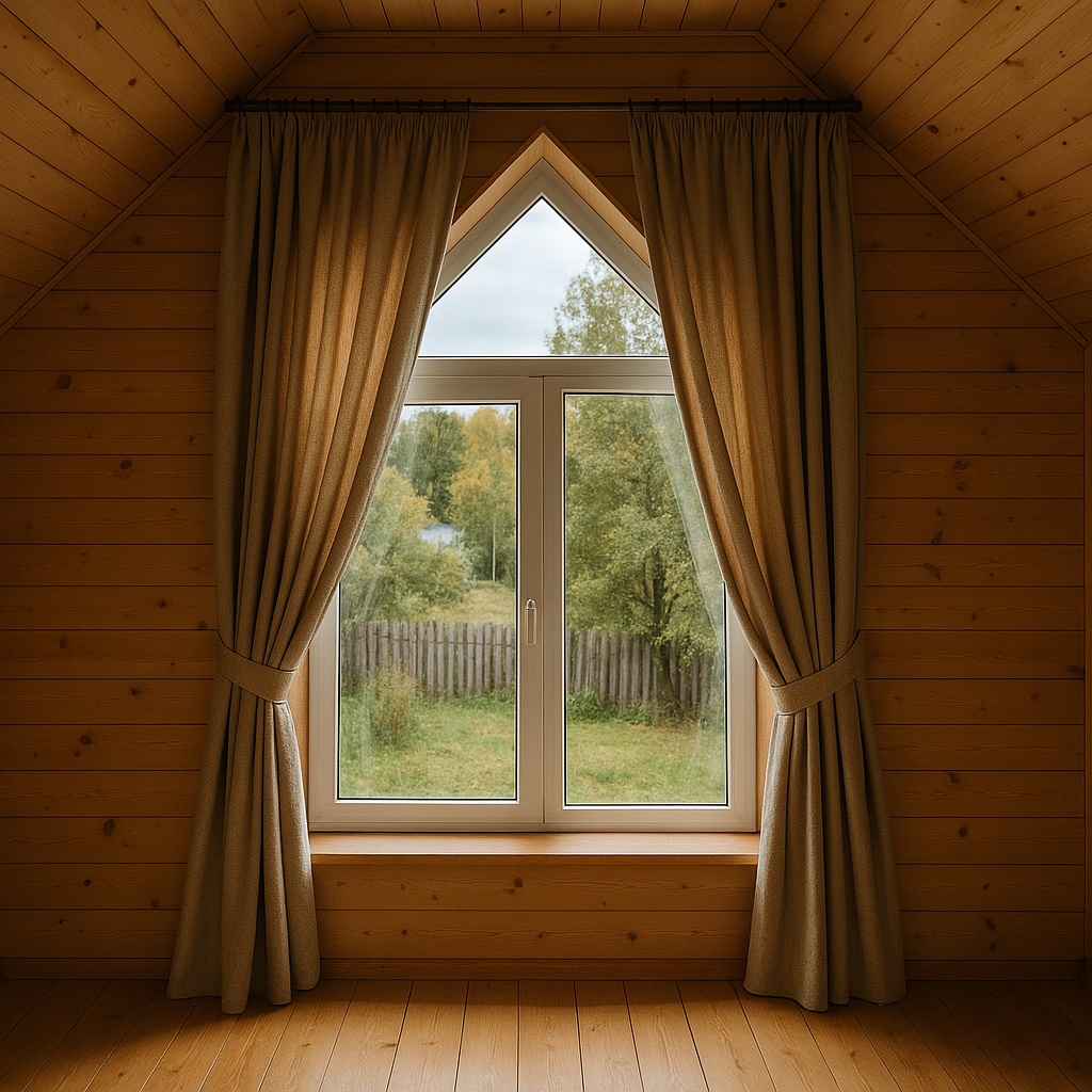 – Для арок, трапеций и нестандартных окон подходит крепление на шторную ленту или скрытую систему — не используйте люверсы и петли в таких зонах