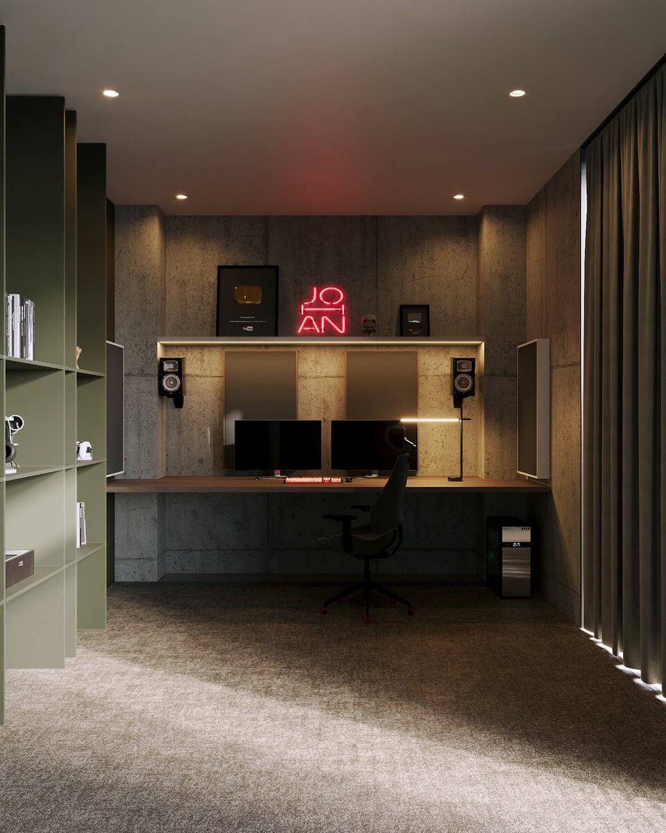 Поэтому сегодня мы публикуем визуализации первого варианта кабинетов по проекту виллы в Тбилиси.
