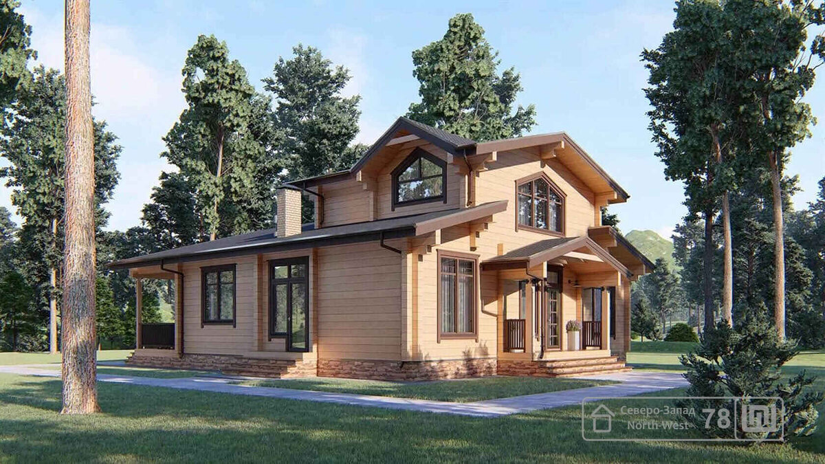 В каталоге компании «Северо-Запад 78» вы найдете проекты домов из клееного бруса — от компактных коттеджей до двухэтажных резиденций с мансардами.