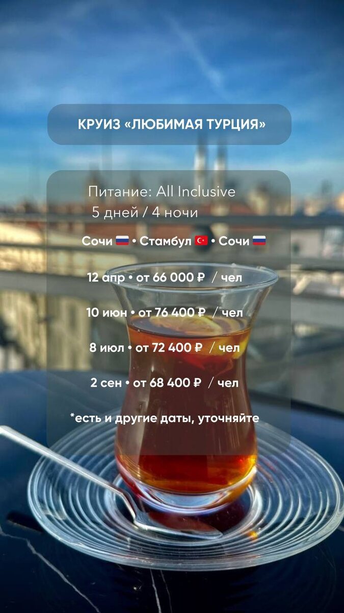А что если отправиться на любимые курорты по-новому? 🤔 Не просто отдых… А круиз на лайнере ASTORIA GRANDE 🚢 Отплытие из Сочи ⚓ • Личные каюты-номера 🛏️ • Питание по системе «всё включено» 🍽️ • Открытая палуба с бассейном и джакузи ☀️🏊♀️ • СПА и фитнес 🧖♀️💪 • Вечерние шоу, театр, казино 🎭🎰 • Детский клуб 👧🧸 Программы круизов ⤵️ *Виза и авиаперелёт до порта отправления и обратно оплачиваются отдельно 📱 Для подбора и бронирования пишите в What’s App или Telegram