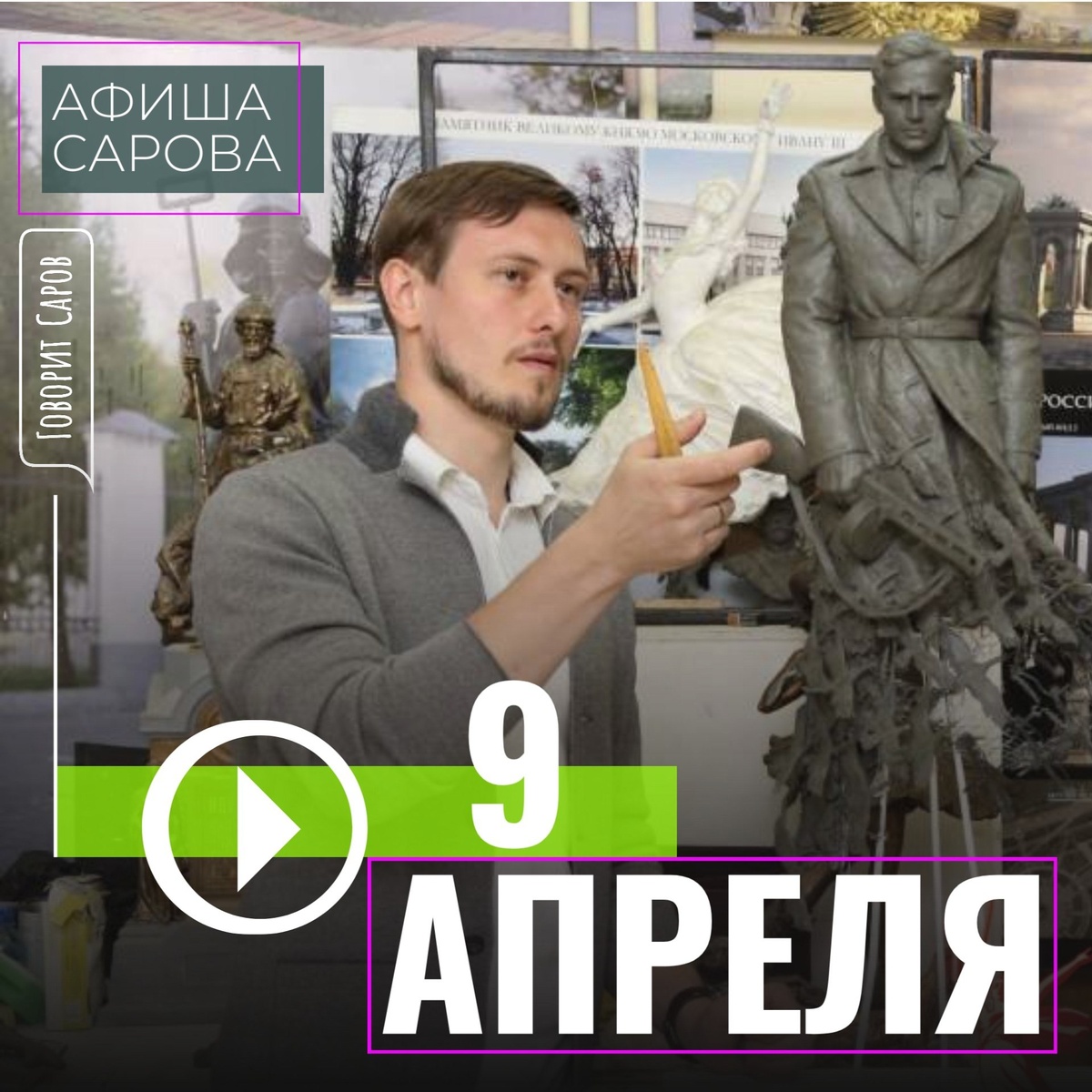 ↗ ЧТО И ГДЕ ПРОИСХОДИТ В САРОВЕ 9 АПРЕЛЯ 🏃Реализация проекта «Спорт в каждый двор» 09:00-12:00 Спортивная площадка, ул.Куйбышева, 3 🏸Молодежный центр (ул. Куйбышева 19/1, тел. 9-91-05) 16:00 – 17:00 Корригирующая гимнастика в рамках проекта «Инклюзивная школа здорового образа жизни «Баланс» 👨🦳Комплексный центр социального обслуживания населения г.Сарова (ул.Шверника, д.11, т.6-94-43) 15:00 Музыкальная литературная программа по творчеству А.Дементьева 🏛Городской музей (пр. Мира, 48, тел. 3-42-56) «Поехали!» выставка фотографий из фондов Городского музея ко дню космонавтики Курс познавательных занятий (по предварительной записи) (6+): «Лес полон сказок и чудес», «Пернатые соседи», «Жужжащие истории», «Красивые и редкие», «История рядом» 🖌Художественная галерея (пр. Мира, 1, тел. 7-02-87) 15:00 Творческая мастерская «Штрихи города» (Пушкинская карта, 8-11 классы) Знакомимся с техникой линогравюры в печатной мастерской Персональная выставка члена Союза…