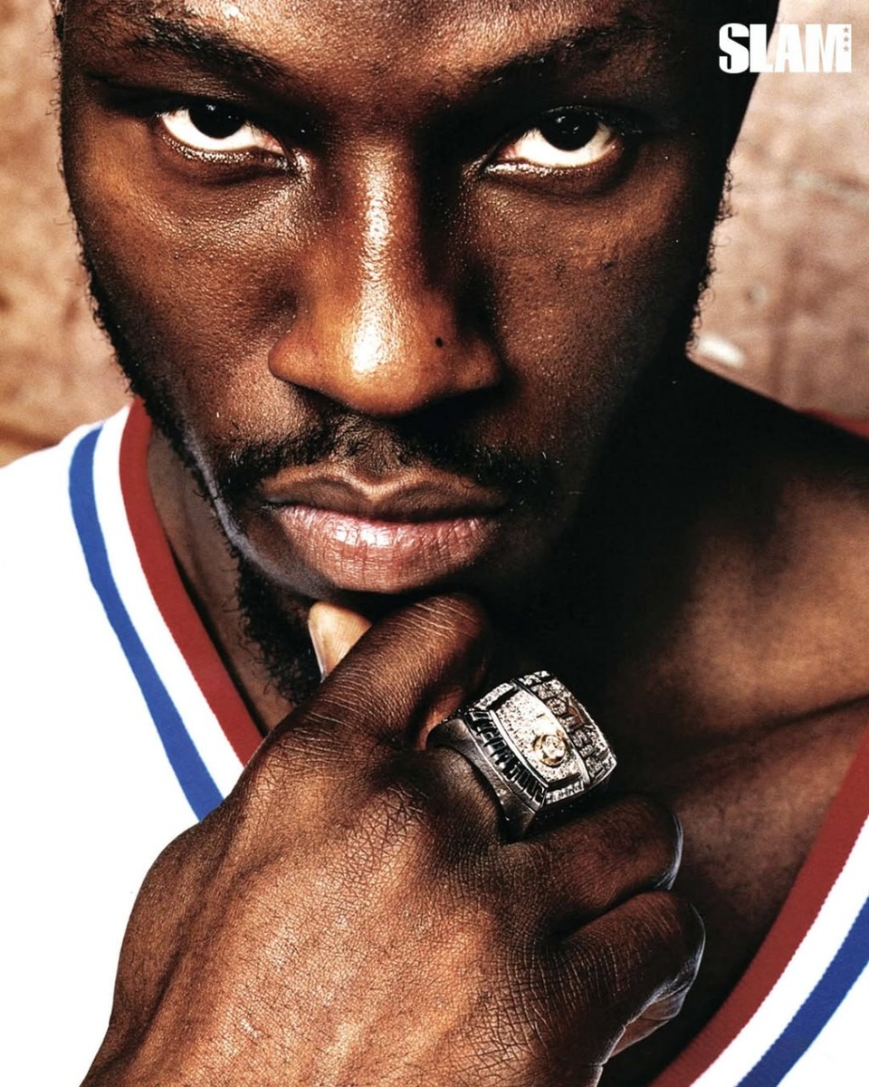 Легенда Пистонс — Бен Уоллес в фотосете журнала Слэм из 2005 года. Интересно, что на обложке центровой в необычной джерси с «разрядами», никогда не видел такой. @bbollerroom