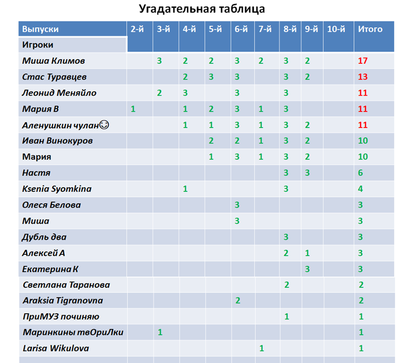 Сейчас наша соревновательно-угадательная табличка выглядит так: