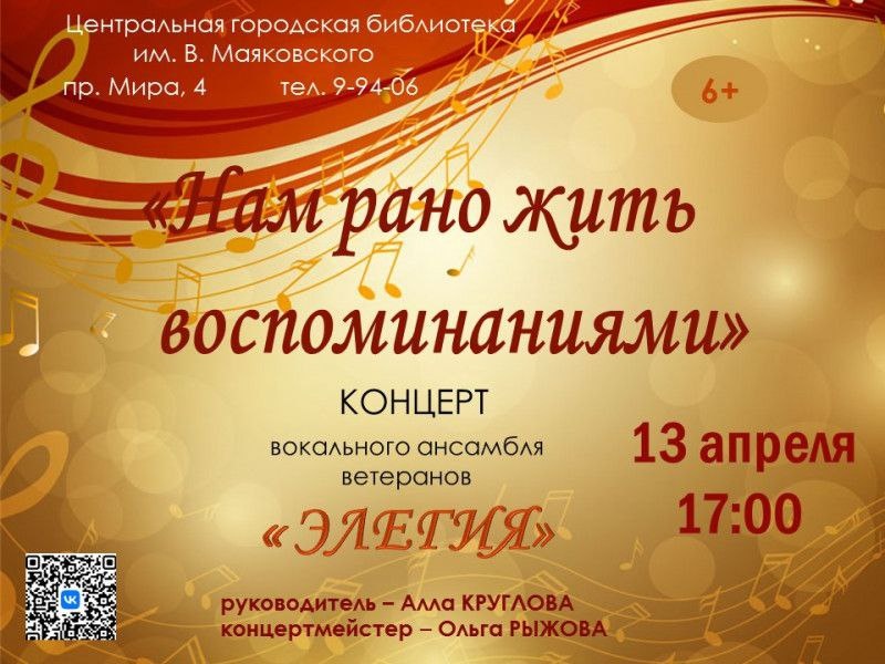 ‼️ Увы, концерт «Нам рано жить воспоминаниями", запланированный на 13 апреля, не состоится.