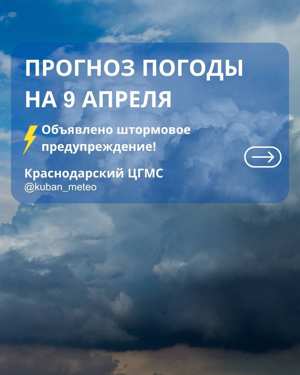 🌨️ Прогноз погоды в Краснодарском крае на 9 апреля.