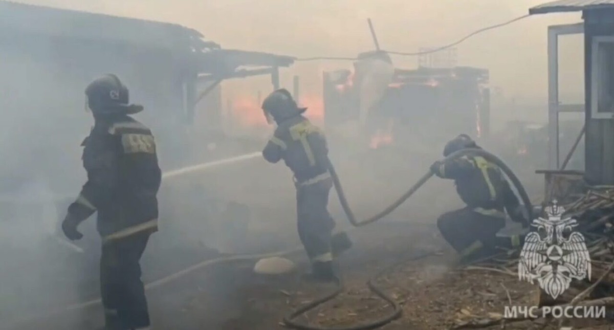 Сотрудники МЧС РФ ликвидировали открытое горение на площади 1 800 квадратных метров в Забайкальском крае, сообщили в ведомстве во вторник. На фото пожарные тушат охваченные огнем здания, автомобили МЧС едут к месту происшествия, а сотрудники полиции дежурят на дороге около пожара. По информации пресс-службы министерства, в Чите произошло возгорание сухой травы и хозяйственных построек. На месте работают 60 сотрудников и 12 единиц техники. Тушение осложняет сильный ветер. Кроме этого, в УМВД по Забайкальскому краю сообщили, что из-за задымления на 1045-м километре трассы «Байкал» ограничено движение автотранспорта. ИСТОЧНИК: Telegram-канал «Полиция Забайкалья» @umvd75; МЧС России