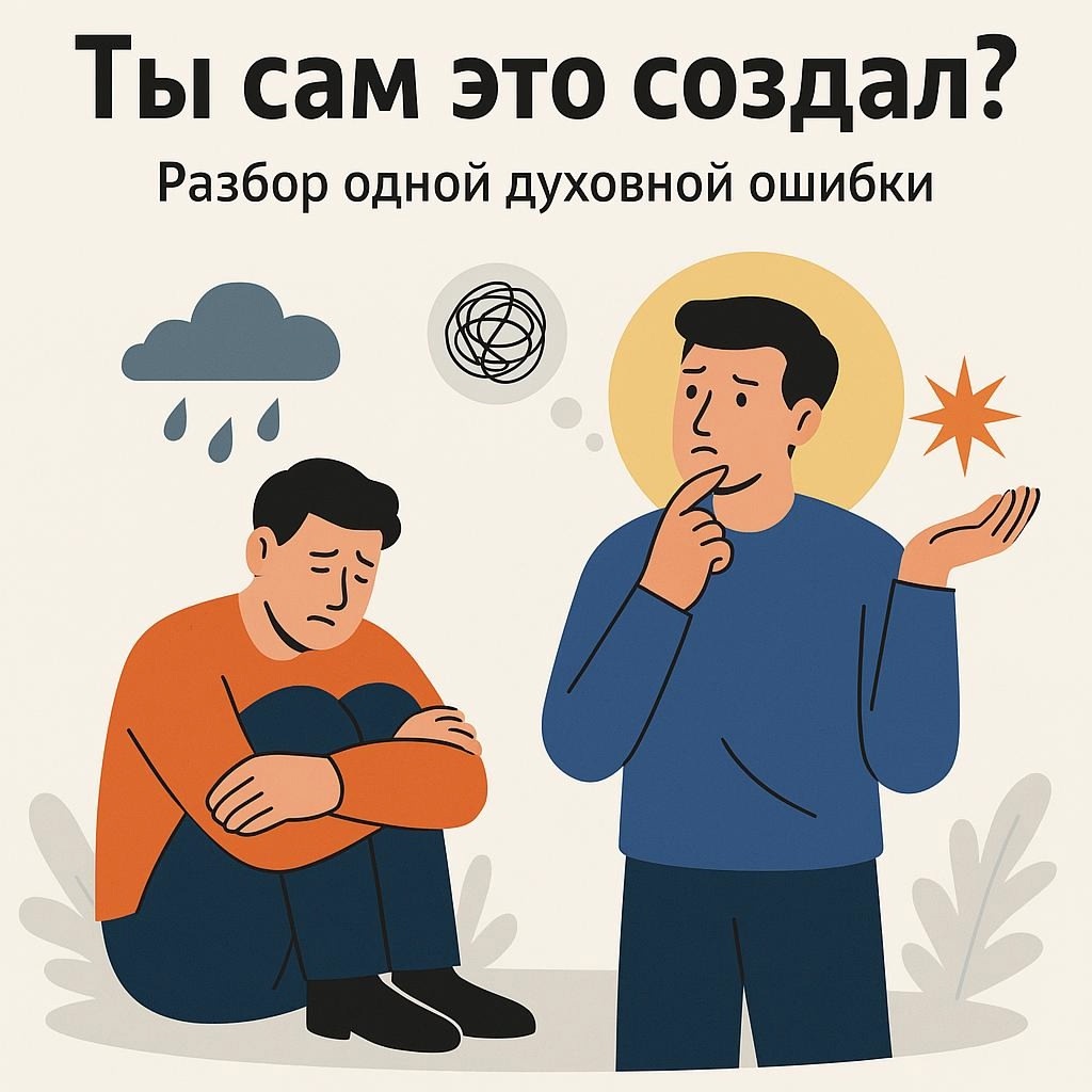 Статья из серии #ловушкидуховногомышления Среди множества идей, гуляющих по миру духовности и религиозной философии, одна звучит особенно громко и настойчиво: Если ты это переживаешь — значит, ты сам это создал. На первый взгляд — почти откровение. Строчка как мантра: звучит ответственно, глубоко, даже освобождающе. «Ты — причина. Ты не жертва. Всё в твоих руках». И в этом, кажется, есть зерно силы… Но за внешней мудростью скрывается нечто опасное. Эта идея — не просто ошибка. Это духовная ловушка, подменяющая зрелость — виной, свободу — магией, а сострадание — холодной догмой. Главное заблуждение этой установки — путаница между тем, что ты испытываешь, и тем, что ты якобы вызвал. Ты можешь: - страдать — но не быть виновником страдания, - оказаться в бедствии — не потому, что ты его захотел, - воспринимать событие — не создавая его. > Восприятие не доказывает авторства. Ты живёшь в мире, полном других людей, решений, процессов, стихий. И не всё, что в него приходит, — твоё творение. Эт