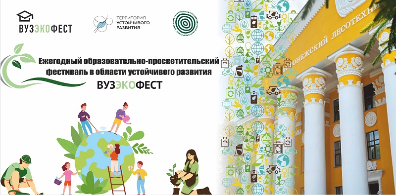 C 7 по 25 апреля в ВГЛТУ им. Г.Ф. Морозова пройдет XI ежегодный молодежный фестиваль в области устойчивого развития «ВузЭкоФест». Проект проводится АНО «Территория устойчивого развития» при поддержке Минобрнауки России и Минприроды России. «ВузЭкоФест» - культурно-просветительский проект, который ежегодно проводит мероприятия, посвященные темам устойчивого развития в вузах Российской Федерации и СНГ. Миссия проекта «ВузЭкоФест» — улучшить окружающую среду за счет внедрения концепции зеленых университетов и интеграции принципов устойчивого развития в деятельность вузов, городов и стран через раскрытие лидерского потенциала молодежи при реализации мероприятий в области устойчивого развития. «ВузЭкоФест» - молодежный проект по формированию сообщества лидеров-наставников и впоследствии профессионалов в области устойчивого развития, которые распространяют знания, навыки и внедряют конкретные «устойчивые» решения на базе вузов, городов и стран при поддержке заинтересованных сторон (администр