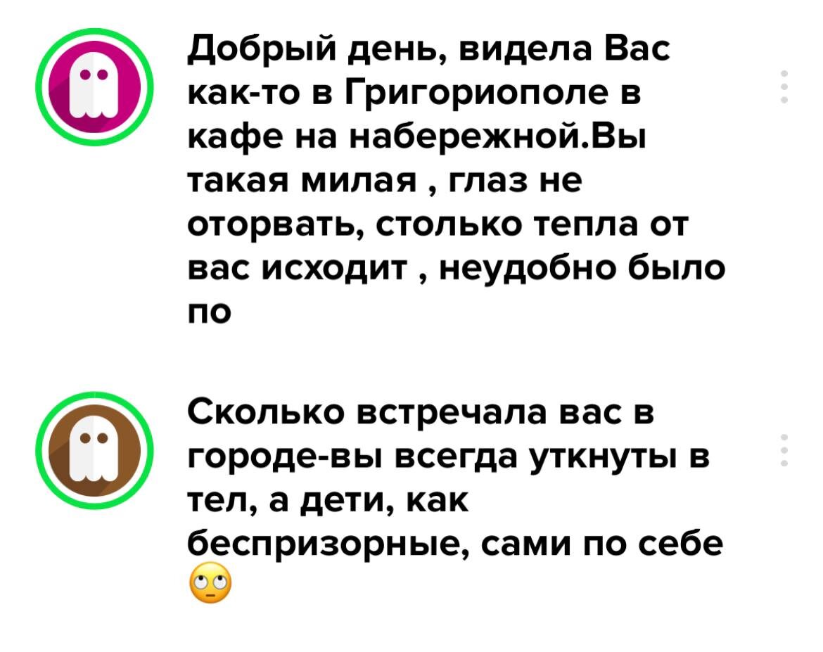 всегда будет актуальным восприятие меня с разных точек зрения всё в глазах смотрящего эти два сообщения пришли одновременно когда-то давным давно, я сохранила и напоминаю себе, что всегда есть те, кому неудобно подойти и он пишет что я теплая и милая и те, кто видит иное