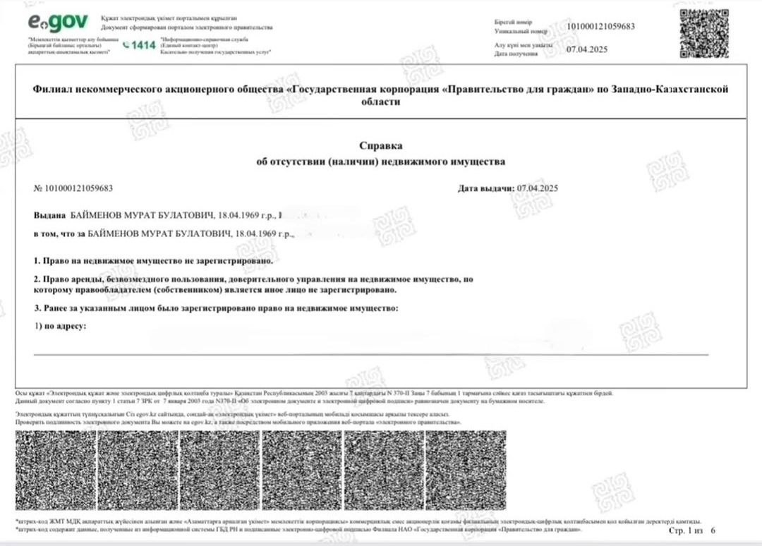 Как отмечает издание, судя по документам, на акима не зарегистрировано недвижимое имущество, на его имя не зарегистрировано права аренды или доверительного управления.