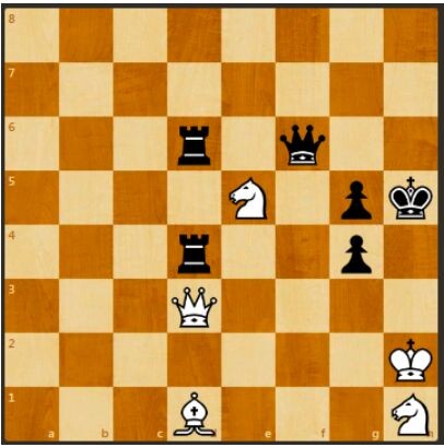 У черных материальный перевес. Однако белые начинают и ставят мат в 1 ход. Хитрый мат в 2 хода, который разрядник не решил тут >>>> Решение смотрите в галерее.