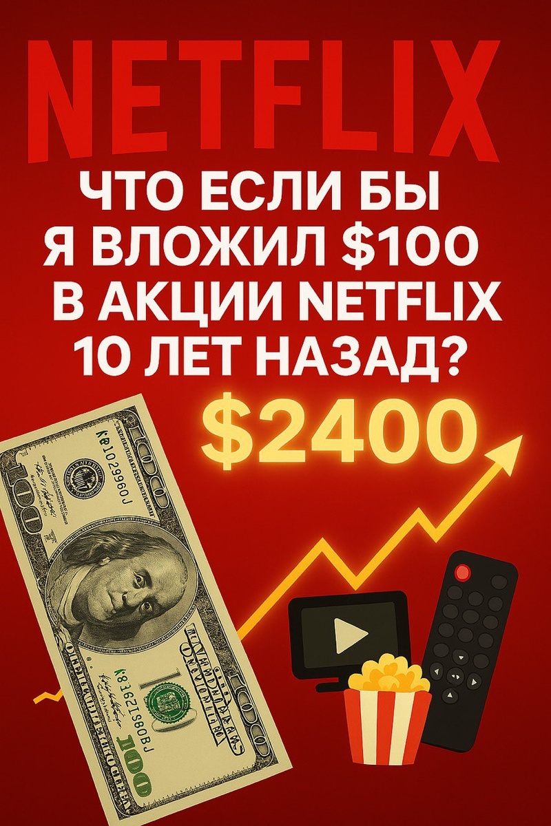 Все мы хотя бы раз мечтали: “Вот бы вернуться назад во времени и вложить деньги в правильную компанию…” Сегодня давай представим, что в 2015 году ты взял 100 долларов и купил на них акции Netflix. Что бы было сегодня? Что тогда происходило с Netflix? В 2015 году Netflix уже был известным сервисом, но далеко не таким популярным, как сейчас. Его стриминговая платформа только набирала обороты. Многие продолжали смотреть телевизор или качать фильмы с торрентов, и не все верили, что подписка на сериалы станет нормой. Тогда Netflix стоил примерно 21 доллар за акцию (с учетом всех сплитов и пересчетов на сегодня). На 100 долларов в 2015 году можно было бы купить около 4,7 акции — округлим до 4 акций для простоты. А сколько это стоило бы сегодня? Сегодня, в апреле 2025 года, акции Netflix стоят около 600 долларов за штуку. Это значит, что твои 4 акции теперь стоят 2400 долларов. Из скромных 100 долларов получилось 2400. Рост в 24 раза! Почему так выросло? С 2015 года Netflix преврати