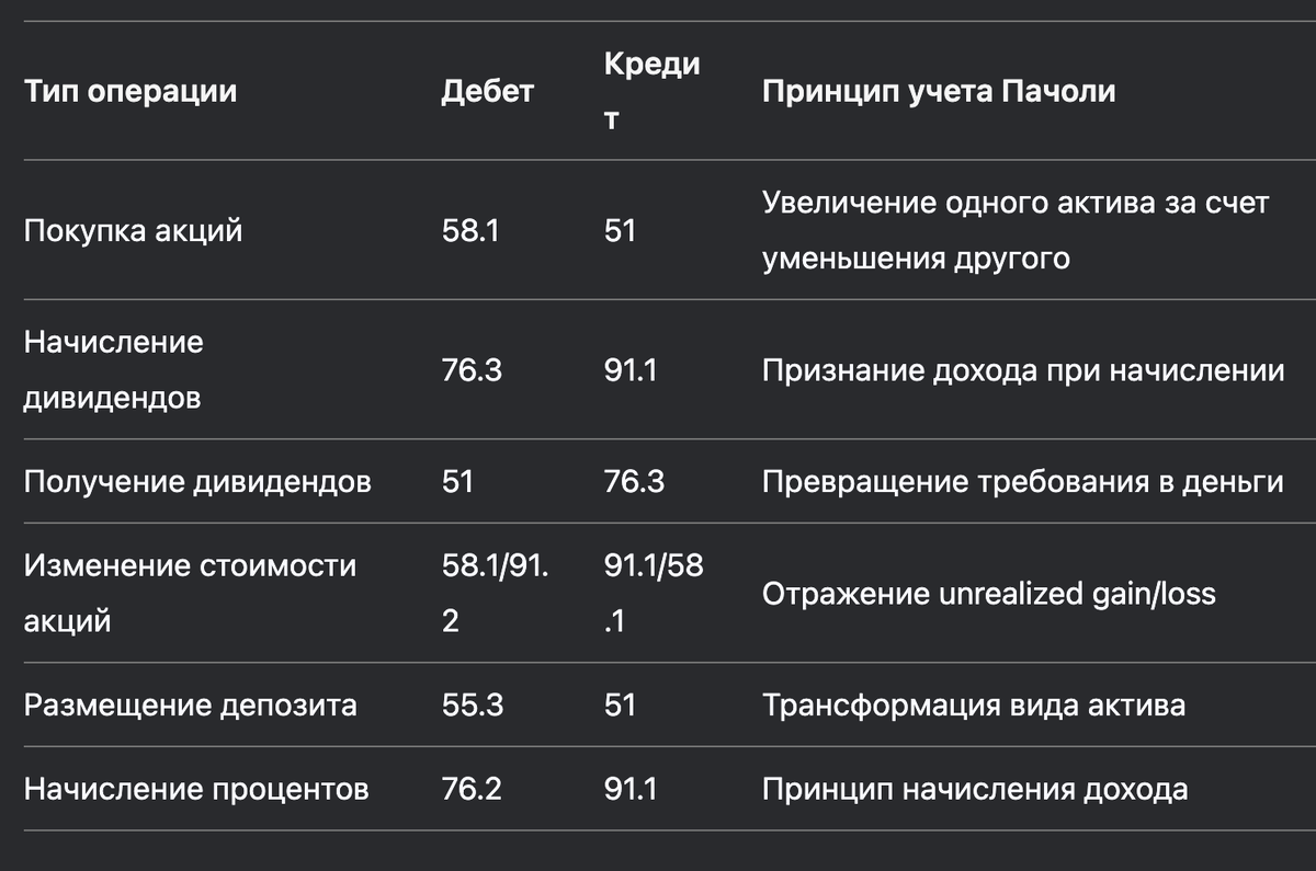 Лука Пачоли (1445-1517), отец современного бухгалтерского учета, разработал бы учет этих финансовых инструментов в рамках своей системы двойной записи следующим образом: