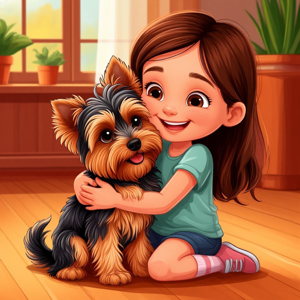 Одним прекрасным утром наша, уже знакомая, девочка Оля вышла гулять первый раз одна со своей собачкой Мими. Помните, совсем недавно мы читали сказку про то, как Оля и её родители забирали Мими из питомника, а сейчас уже прошло несколько лет и щенок вырос в небольшую, как и хотела мама, но очень радостную и замечательную собачку. Оля перед выходом надела на Мими комбинезон, натянула ботиночки и пристегнула шлейку. Взяла поводок и отправилась на их первую одиночную прогулку. До этого дня мама с папой не разрешали Оле выходить одной, а сегодня стало можно, ведь Оля ещё на год стала старше. Выйдя на улицу Оля немного испугалась, ведь на газоне гуляли несколько собак со своими хозяевами. Большой лабрадор Фидель играл в мячик, бигль Симба бегал по траве и рыл огромные норы, небольшой мопс Табик носился и облизывал всех. Но на площадке появилась одна незнакомая собака такой же породы, как Мими - Йорк. Оля решила сначала немного прогуляться, а затем подойти и познакомится. Оля прошлась с Мими