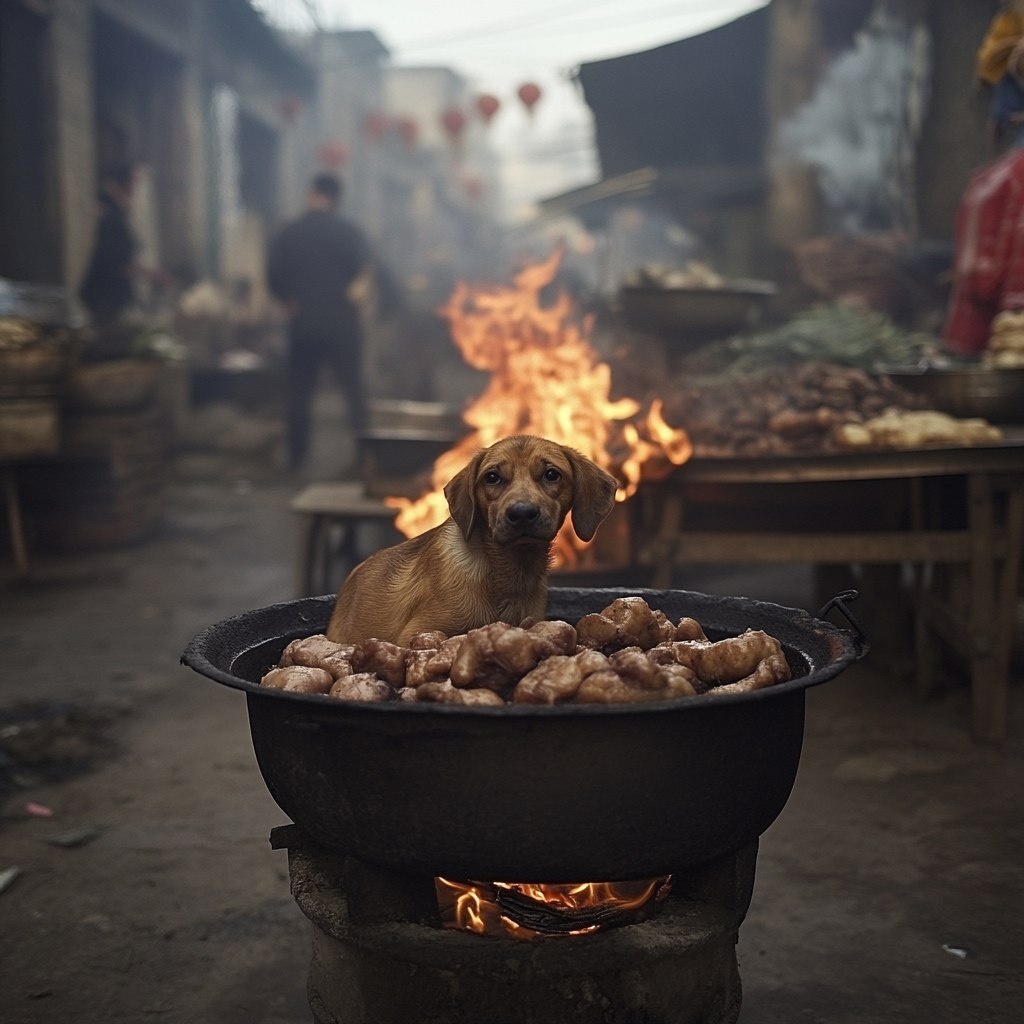 Создано на основе запроса: the tragic horrors of the Yulin Festival, burning and cooking