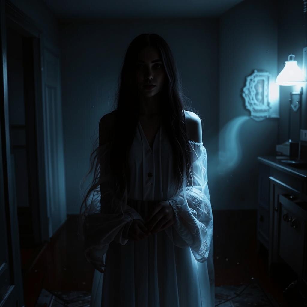 Пролог В маленьком городке, затерянном среди холмов и старых лесов, ходили легенды о загадочном призраке. Говорили, что он появляется только тогда, когда дети начинают вести себя непочтительно по отношению к взрослым. Призрак, по слухам, выглядел как маленькая девочка с длинными чёрными волосами, закрывающими лицо, и бледной кожей, почти прозрачной, словно туман. Её глаза светились тусклым голубым светом, а одежда была старой и потрёпанной, словно из другого века. Глава 1: Первые встречи Первым, кто столкнулся с призраком, был маленький мальчик по имени Миша. Однажды вечером, когда он играл в саду и нарочно игнорировал просьбы бабушки вернуться домой, он услышал странный шепот позади себя. Обернувшись, Миша увидел девочку-призрака, стоящую у забора. Она смотрела на него, не двигаясь, и её взгляд был таким тяжёлым, что мальчик почувствовал, как его сердце замерло. — Почему ты не слушаешь старших? — спросила девочка низким, глухим голосом. Миша испугался и убежал домой, рассказав