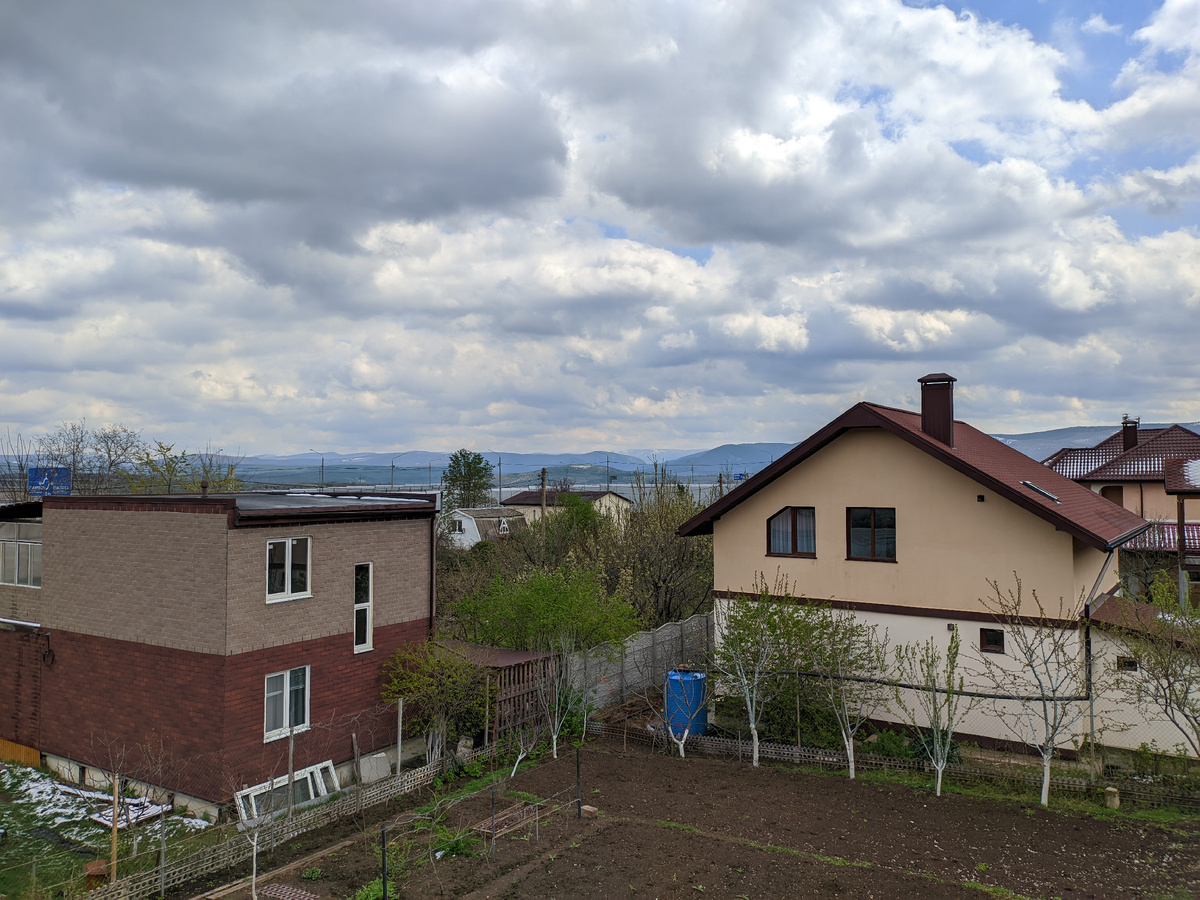 Сегодня день прихода в себя после вчерашних событий, тут вам и позитивные судебные победы, и домашний праздник и тут же негативное природное мероприятие показать южанам снежную кузькину мать в апреле. Нам-то что, замерз, шмыг домой и там согрелся, а вот флора нашего участка изрядно подмёрзла. Да и пернатая фауна тоже шмыгает простуженным клювом, сыро же было, зябко. С утра конечно снег стал быстро таять на фоне плюсовой температуры, но в тени снег продолжал лежать. Дымка весь день отсыпается, говорит, что пока на улице не потеплеет, она в эту мерзлявую клоаку ни лапой. Потом набежали тучи, тучи сменились белоснежными облаками и вдруг даже солнце появилось, яркое и жаркое, а вот ветер был морозный. Когда солнечно, то сразу хорошо так становится, вроде через месяц и лето крымское должно наступить, в мае. Как потеплело, я сразу во двор, проверить последствия. Пока непонятно, что там с плодовыми дальше будет, но чувствуется, не очень им комфортно вчера было. Почки у деревьев как-то мутнова