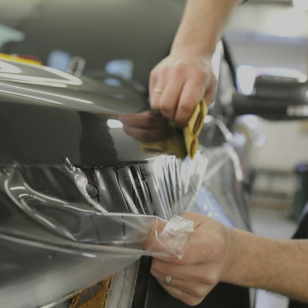 На сегодняшний день оклейка машины пленкой является лучшим способом защиты ЛКП кузова от мелких повреждений. Обычно автомобиль оклеивается виниловой или полиуретановой пленкой. Виниловое покрытие стоит дешевле, чем защитная пленка для автомобиля. Но оно тонкое — всего 100 микрон. За счет своей тонкости оно не может защитить кузов от серьезных повреждений, но от мелких царапин и потертостей виниловое покрытие обычно спасает. Еще один недостаток — винил сильно заметен на машине. Полиуретан плотнее, чем винил. Его толщина — от 180 до 230 микрон. Благодаря своей плотности, полиуретановая пленка защищает от царапин и сколов от камней, града и веток. Она также может защитить краску от повреждений при аварии. Данная пленка может выдержать небольшие удары по касательной при мелких ДТП во время парковки. Полиуретан — это материал, который не меняет цвет машины. Он прозрачный, поэтому благодаря способности пропускать ультрафиолет возможна частичная оклейка деталей кузова — выгорание поверхности