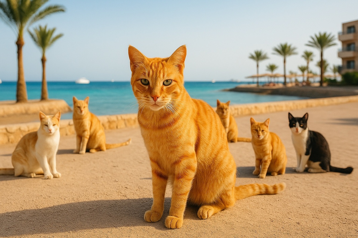 Коты и кошки уже давно выбрали себе Хургаду в качестве одного из любимых городов-курортов мира. По оценкам волонтёров и ветеринарных организаций в этом египетском городе насчитывается от 25 до 35 тыс. уличных кошек, однако следует понимать, что это неофициальная цифра, так как никакой официальной переписи кошачьего населения Хургады не проводят. Но, если вы оказались в этом городе на отдыхе, или даже решили тут поселиться, то будьте готовы к постоянным встречам с этими пушистыми хозяевами города на пляжах, в отелях, ресторанах и на улицах, они тут везде. Как так получилось? На самом деле причин такого огромного кошачьего братства несколько: 1. Мягкий климат. Тут нет зимы, нет холода, а дождь бывает максимум раз в году, да и то, если очень повезет, на пару минут, не больше. Поэтому коты и кошки прекрасно выживают и плодятся круглый год. 2. Религия. В исламе кошки считаются чистыми животными. Пророк Мухаммед, как гласит легенда, обожал кошек и однажды даже отрезал рукав своей одежды, чт