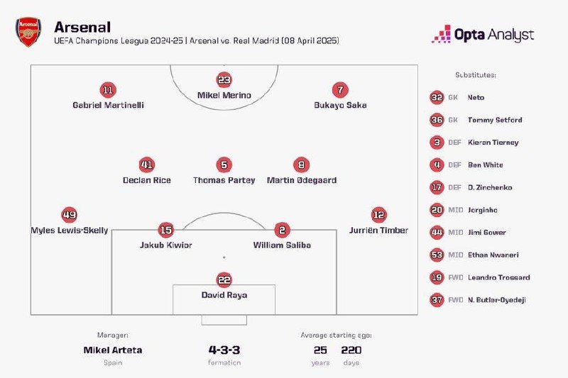 Объявлены составы на матч Лиги Чемпионов "Арсенал" — "Реал". Кивер заменил Габриэля, Сака в старте ☝️